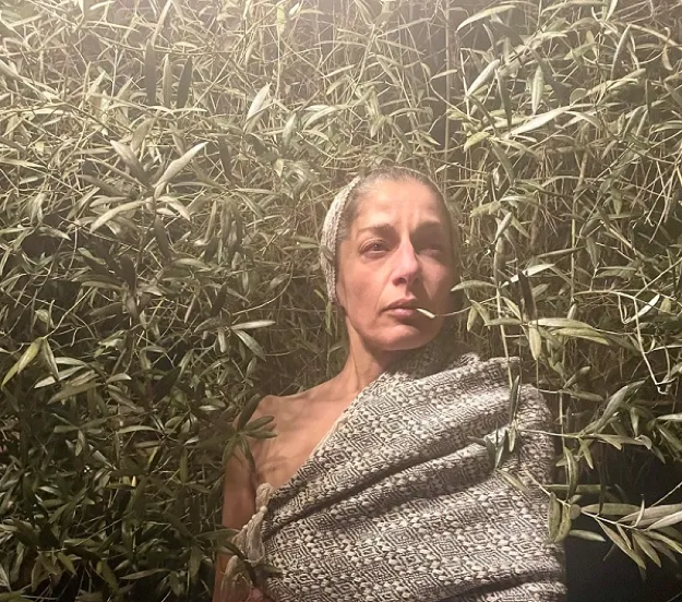 Her subject surpasses the boundary of a fictive figure with intimations of historical content, aiming for the far reaches of human experience. This is an old man referenced by a feminine pronoun, an androgynous person of manifest femaleness, embodying the memory, the trauma and the luminous aspect of a timeless land. The body gradually becomes a battlefield, a place of healing and a testimonial for what has transpired and exists on record. The physical form alludes to the mythological symbol of the olive tree, wielding the power and the will to reproduce, the ability to know, the capacity to withstand. The performer effectively represented the motif of transformation, using not only characteristic props, such as the large shawl turning to a magic carpet and a veil, but also the well-tuned instrument of her voice and her precise emotive movement, interacting masterfully with the musician on stage, Antonio Alemanno.